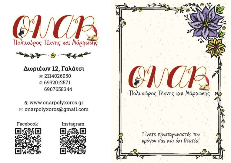 Είμαστε στην ευχάριστη θέση να ανακοινώσουμε σε όλους τους φίλους μας ότι επιτέλους ο Πολυχώρος Τέχνης και Μόρφωσης “ΟΝΑΡ” είναι σε λειτουργία!