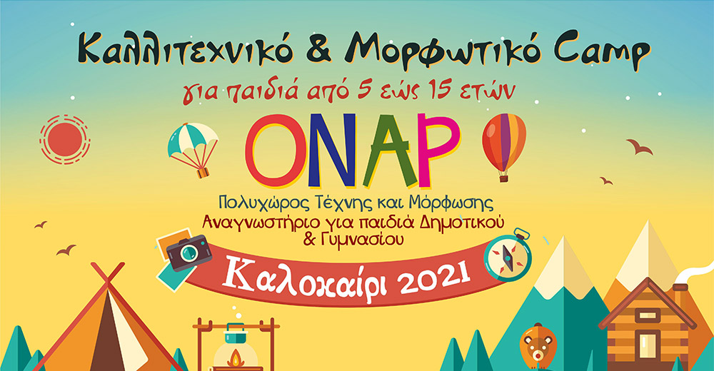 Με ιδιαίτερη χαρά σας καλωσορίζουμε στο φετινό Camp του Πολυχώρου Τέχνης και Μόρφωσης «Όναρ». Άλλο ένα καλοκαίρι σας καλούμε να το περάσουμε μαζί με γέλια, χαρά, παιχνίδια και δημιουργία!