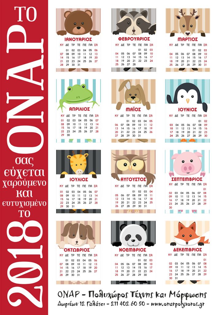 Το ημερολόγιο του ΟΝΑΡ – για το 2018 είναι έτοιμο και μπορείτε να το προμηθευτείτε από το χώρο του ΟΝΑΡ – Πολυχώρος Τέχνης και Μόρφωσης, Δωριέων 12 στο Γαλάτσι. Ευχόμαστε σε όλους κάθε μέρα του 2018 να είναι καλύτερη από την προηγούμενη!
